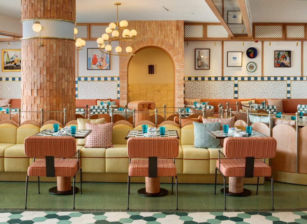 El interiorismo, firmado por AvroKO, se inspira en formas y texturas gaudinianas para crear capas, color y juego visual. El comedor se abre a una terraza soleada frente al puerto, donde la brisa marina completa una experiencia diseñada para los cinco sentidos. El resultado es un espacio que redefine el tapeo sin perder raíces: autenticidad y creatividad vibrante en el nuevo SLS Barcelona, el place to be de la ciudad.