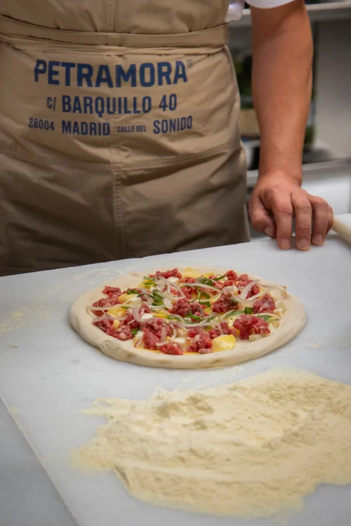 El resultado es una pizza singular, que combina ternera ahumada con madera natural, fior di latte, fontina, patata, cebolla, pecorino, yema de huevo y aceite cítrico de estragón. Una propuesta que reivindica el poder de la colaboración y el respeto por la materia prima.