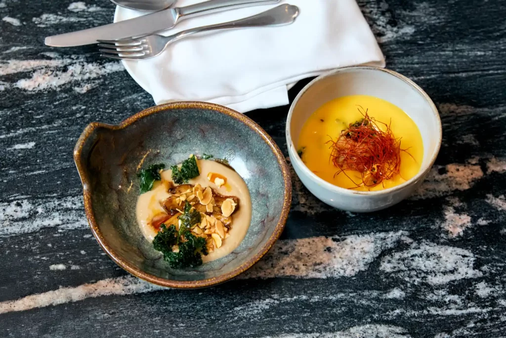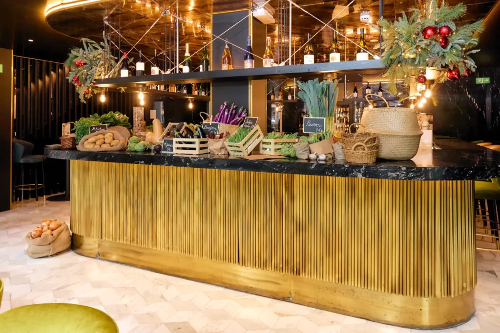 El concepto es tan sencillo como revolucionario. Al llegar, el comensal se encuentra con un auténtico mercado de productos locales y ecológicos instalado dentro del restaurante. Hortalizas de temporada, verduras recién recolectadas y productos de proximidad cuidadosamente seleccionados se exhiben como pequeñas joyas naturales.